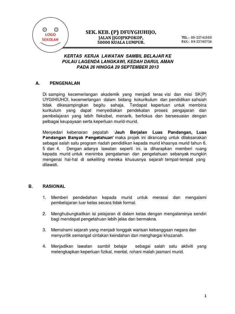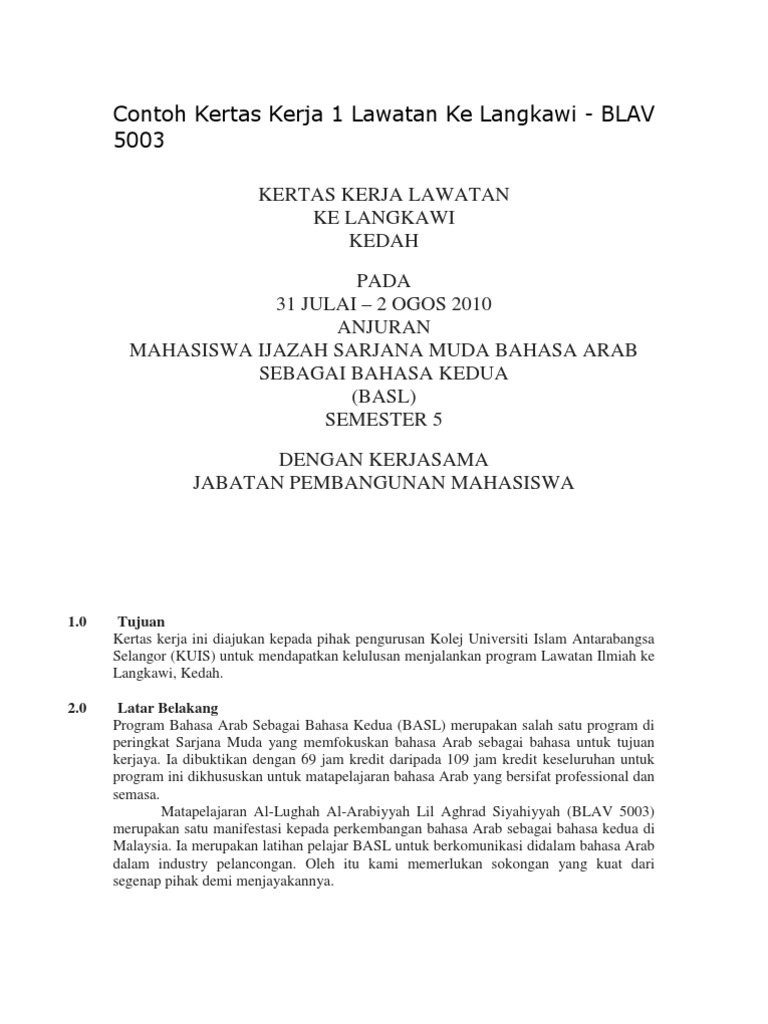 Contoh Kertas Kerja 1 Lawatan Ke Langkawi Pdf