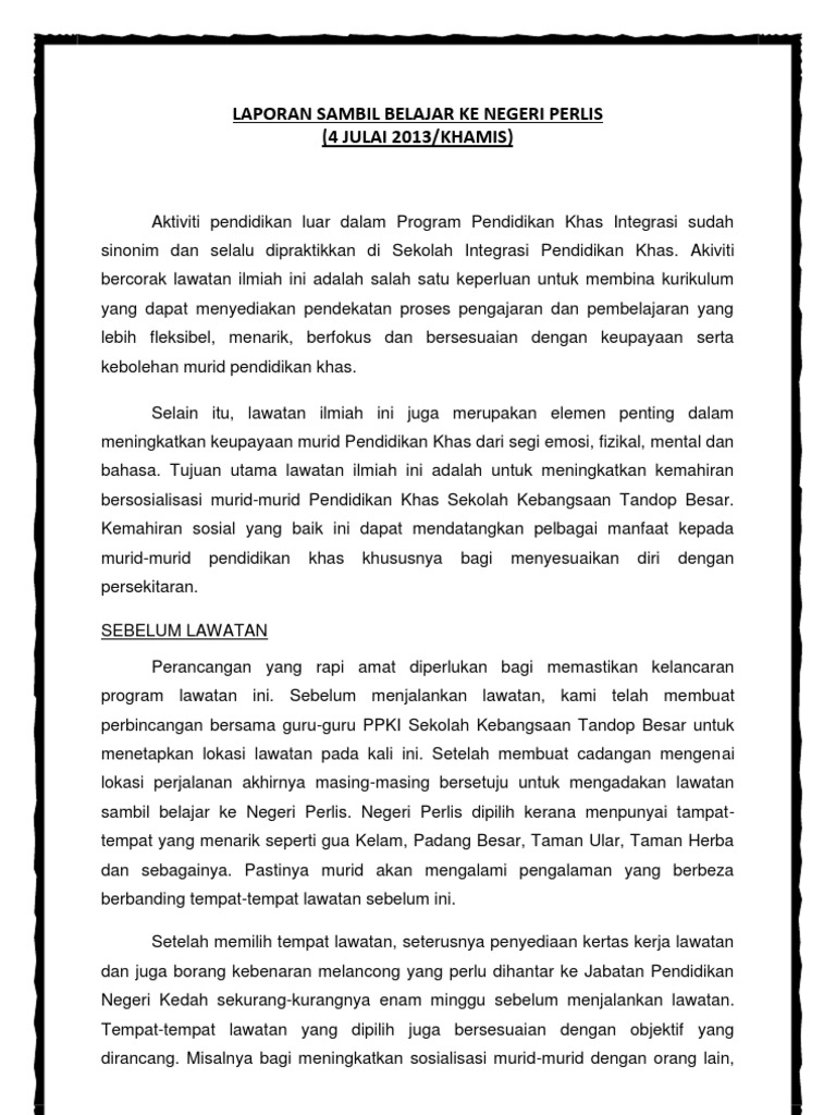 Laporan Sambil Belajar Ke Negeri Perlis Pdf
